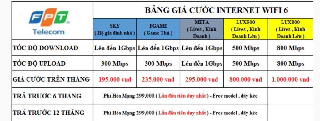 - Đặc biệt Gói Lux500 và Lux800 áp dụng công nghệ WiFi-6: Gia tăng tốc độ, mở rộng vùng phủ, trải nghiêm mượt mà, hỗ trợ cùng lúc nhiều thiết bị
